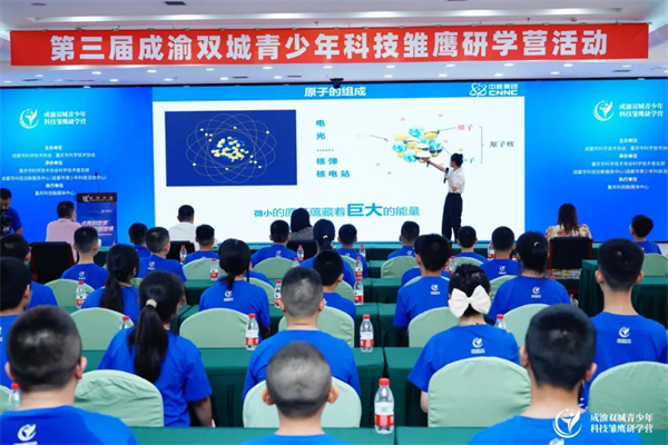 据了解,此届成渝双城青少年科技雏鹰研学营以“点亮科学梦,激发报国情”为主题,研学营由来自成都、重庆两地的80位营员组成,营期7天,科技雏鹰们将走进成渝双城部分“双一流”高校、重点实验室与研究院所、知名博物馆、高新技术企业等参访学习,对话专家大咖,聆听科学故事。
