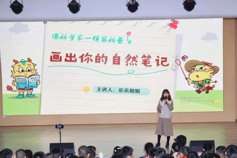 活动最后,全国科学素养大赛命题及评审专家,全国优秀少先队辅导员,《课堂内外》小学版编辑吴明红为全体师生带来了“像科学家一样写科普”主题授课,短暂的40分钟的课堂迎来了现场同学们的积极参与,许多同学表示自己开始对写科普感兴趣,将努力尝试去做一名校园科普小作家。