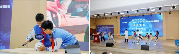活动还邀请了成都市成华小学校“小飞”机器人校机器人社团进行展示互动,紧接着,成华小学蜀都分校科学组老师还为大家演示了一场经典实验——“马德堡半球实验”。精彩有趣的展演、蕴含知识的实验,点燃了同学们对科学的热情。