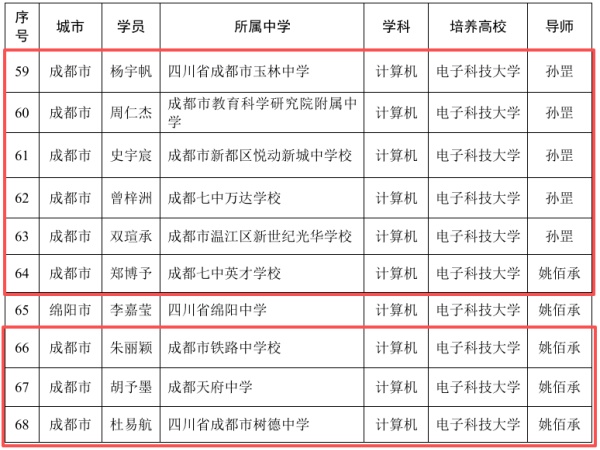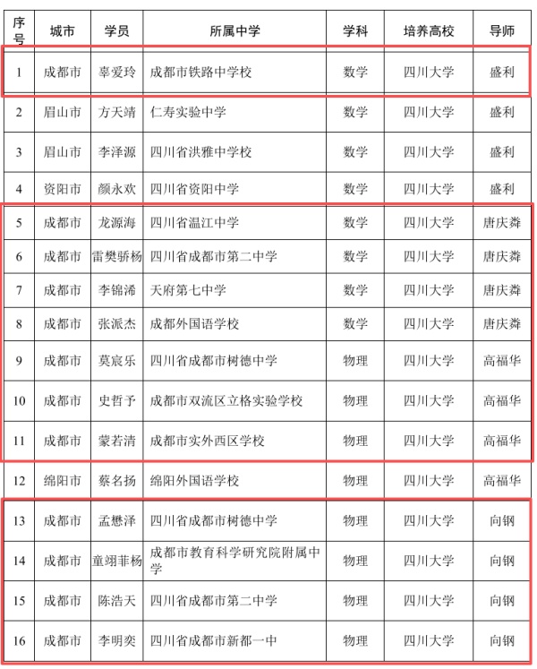 近日,2025年“中学生英才计划”(四川省)工作,经网上审查、学科潜质测试和导师面试选拔,入选学生名单已出炉,成都市共有54人入选。