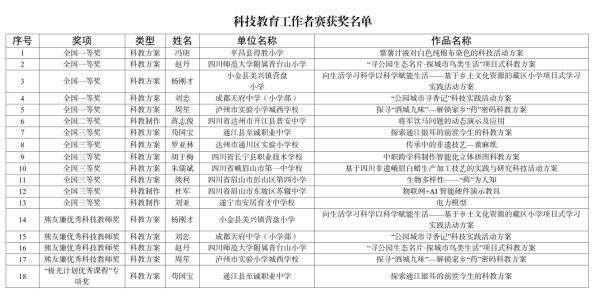 亮眼的成绩背后,离不开四川构建的科创培育体系。近年来,四川省青少年科技中心、四川省青少年科技教育协会始终把培育科技创新后备人才放在首位,搭建起“课程研发+赛事历练+师资赋能”的全链条培育模式。这次大赛科技辅导员们的优异表现,既是对四川科技教育工作的一次“实力认证”,更给全省科技教育工作者注入了一剂强心针。接下来,省青少年科技中心、青少年科技教育协会将切实整合高校、科研院所的优质科普资源,引导和培养广大科技教师全面的科学素养和能力,为四川青少年科技教育高质量发展注入澎湃新动能。