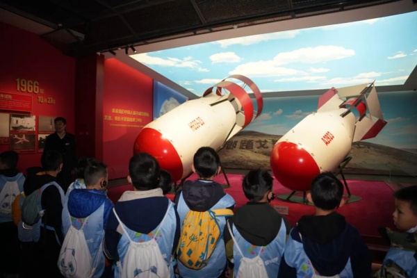下午,青少年走进两弹城博物馆,亲手触摸“东风二号”导弹模型外壳,仔细观察“东方红一号”卫星的结构细节,观看动态发射演示,在5D穹幕影院,大家观看了原子弹爆炸模拟影片。