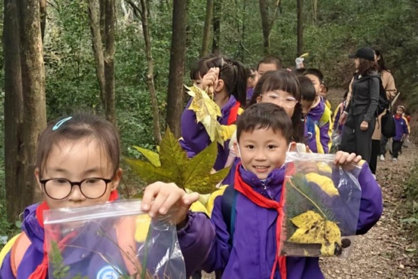 活动中,青少年们徒步山间,观察植被形态,收集落叶、松果等自然素材,在实践中学习植物特征与生态知识。在随后的手工环节,大家以自然之物为媒介,借助黏土、彩笔等材料,将树叶转化为“头发”、松果变为“鼻子”,绘制出一张张充满想象力的“自然面孔”。