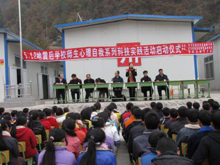 北川片口中学的有关负责人介绍,地震后的每一次余震,学生都恐慌,学校组织开展地震安全转移演练及长达一月的地震知识讲座,学生现在基本消除了恐慌心理,余震来临的时候也知道怎么做了。开坪小学的张校长说:“专家的讲座很有针对性,所有教师和学生都有耳目一新的感觉,很有必要。”民族中学的王强(王强的哥哥在地震中遇难)他说:“灾后一段时间,注意力容易分散,脑袋里面有奇怪的画面,有人碰了自己就会用力碰回去。”通过何奎莲副教授的疏导,王强明白了这些都是灾后正常的心理反应,并学会了一些自我控制和放松的技巧。